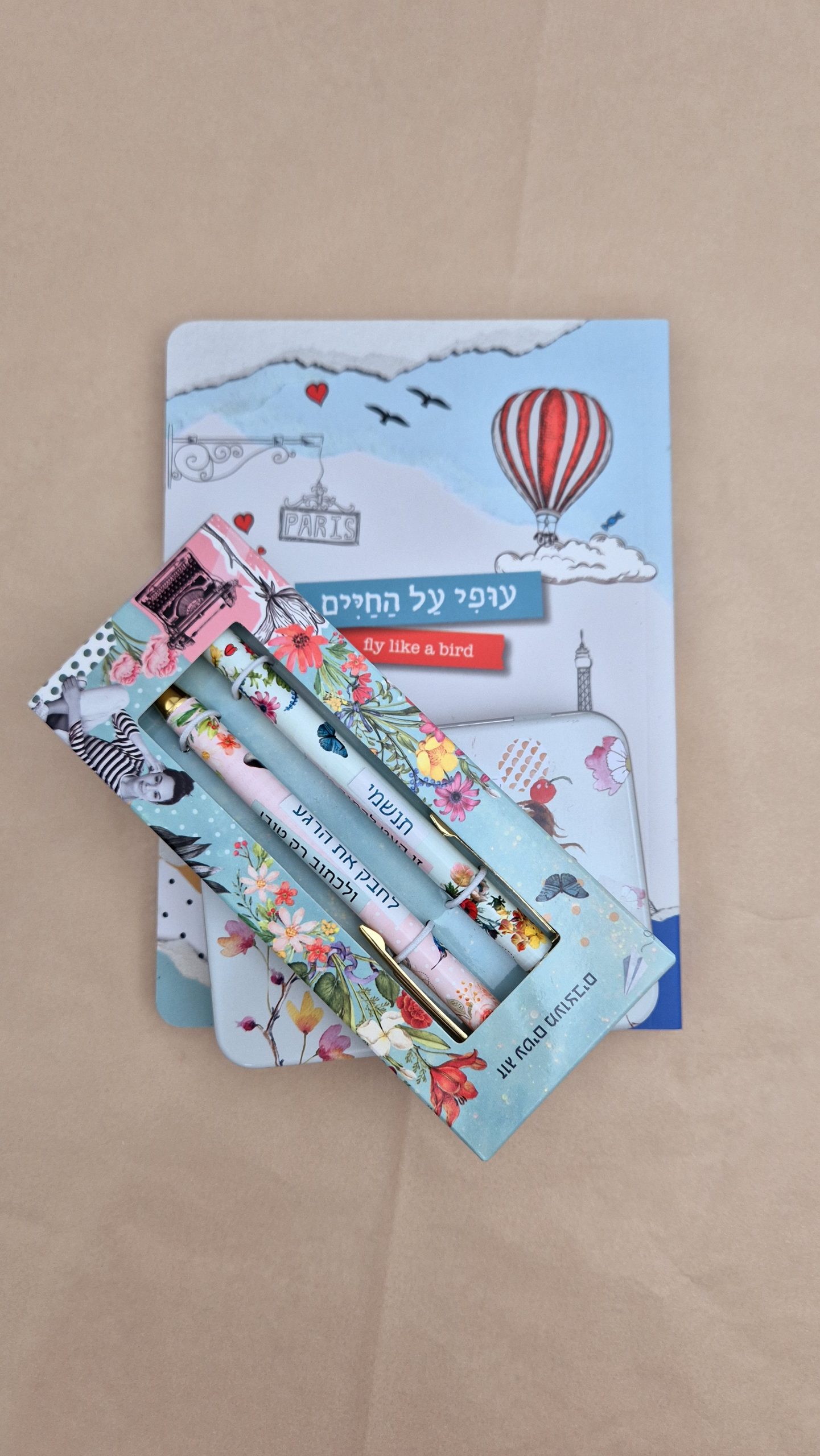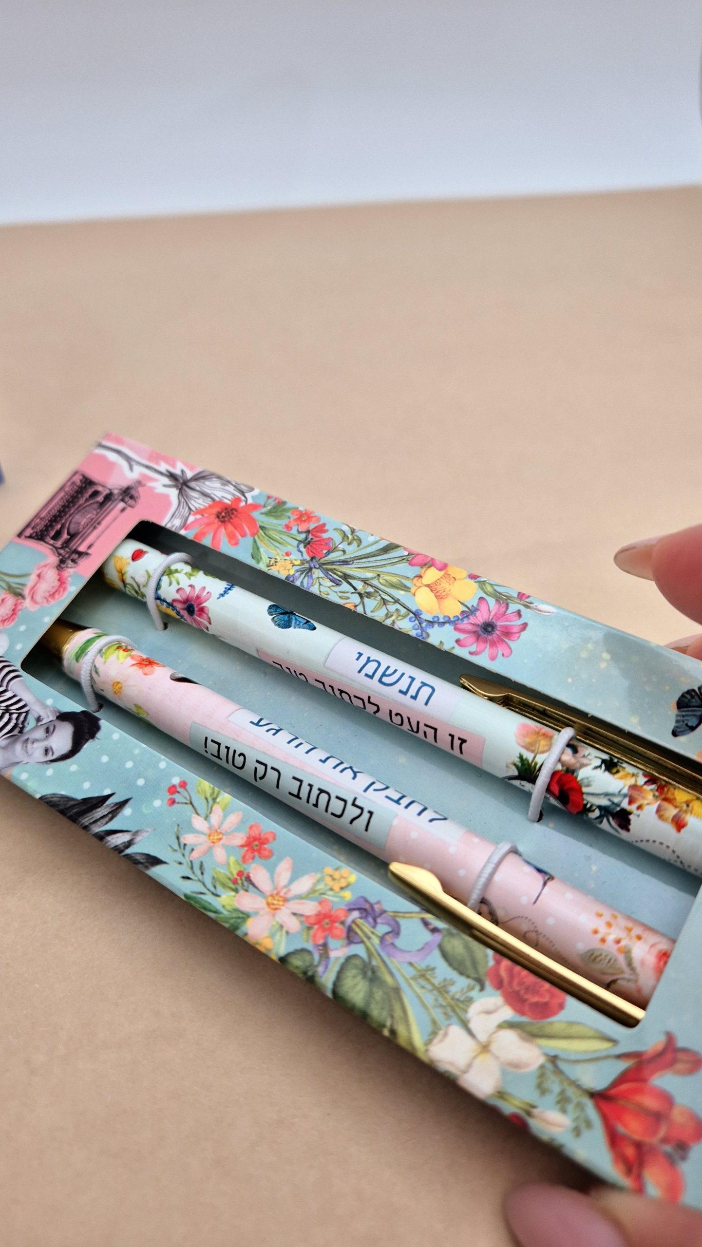 – זוג עטים פרחוניים עם כיתוב מעצים