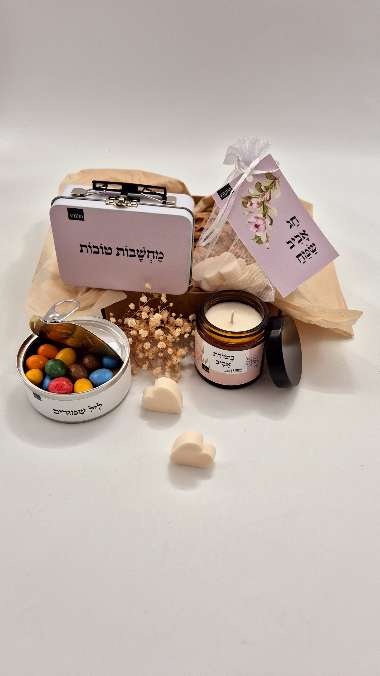– מזוודה “מחשבות טובות” במילוי כ-150 דפי ממו עם משפטי חשיבה חיובית | קופסת מתכת בגודל 7*11ס”מ