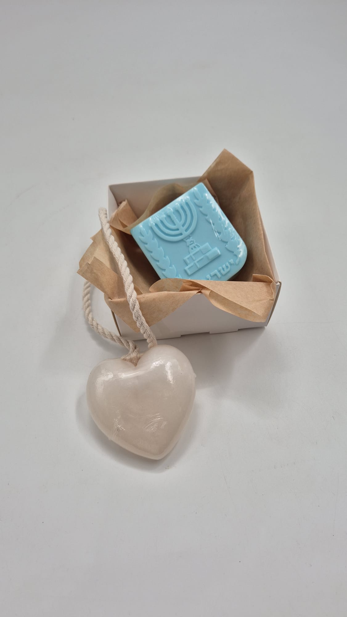 מארז זוג סבונים מעוצבים, המיוצרים בישראל בעבודת יד ומחומרים טבעיים